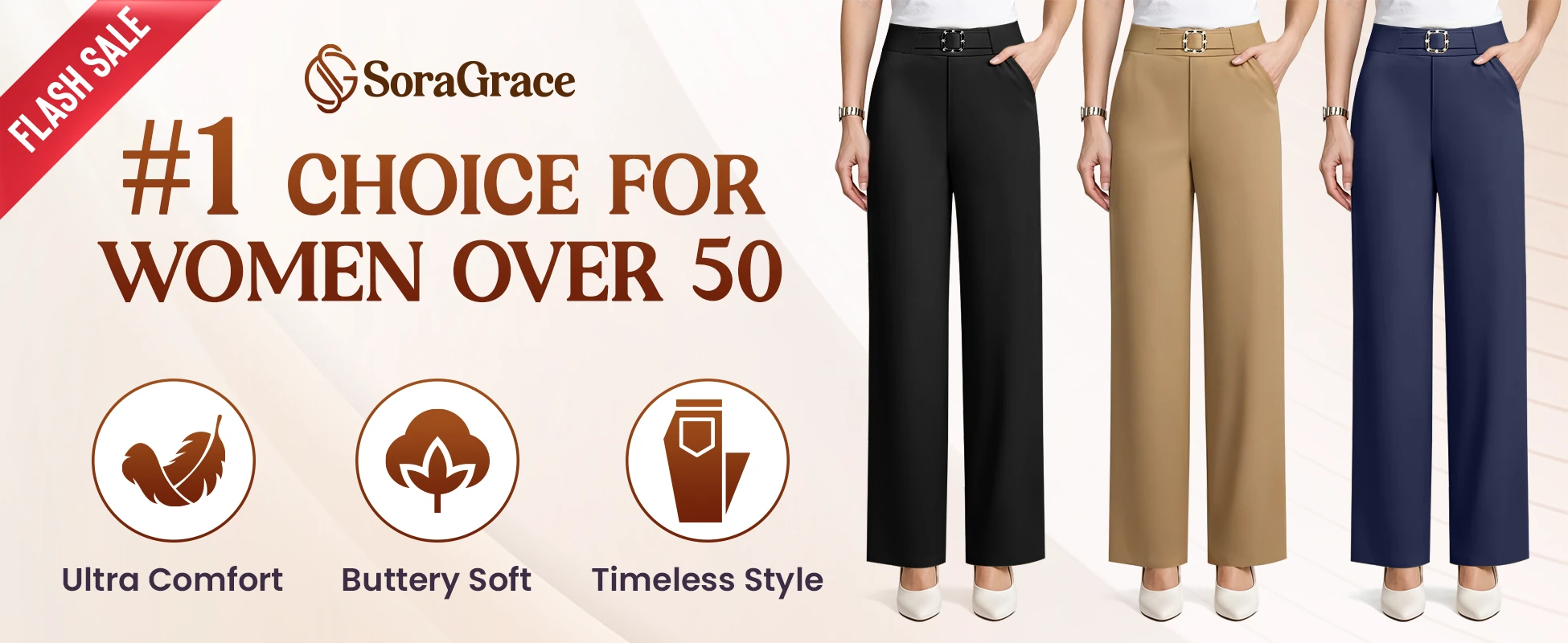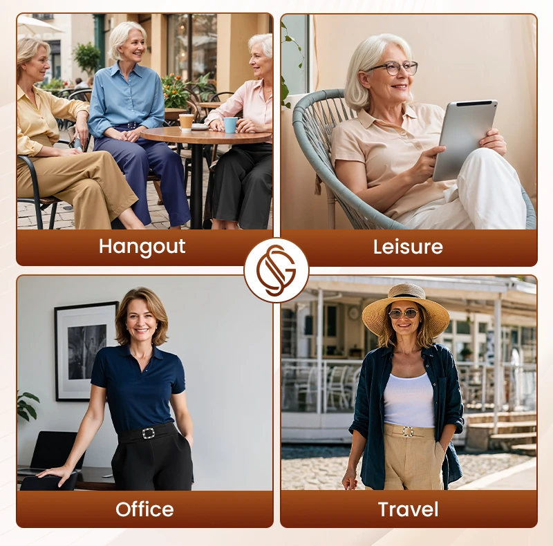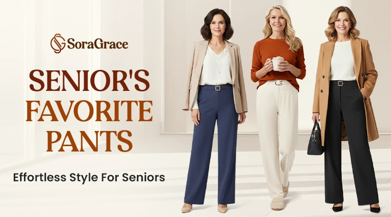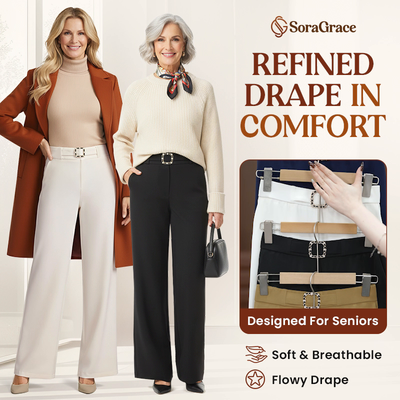 Experience timeless elegance with SoraGrace, high-rise pants that offer all-day comfort, graceful movement, and a flattering fit - thoughtfully crafted for senior women who value style and comfort in equal measure.
