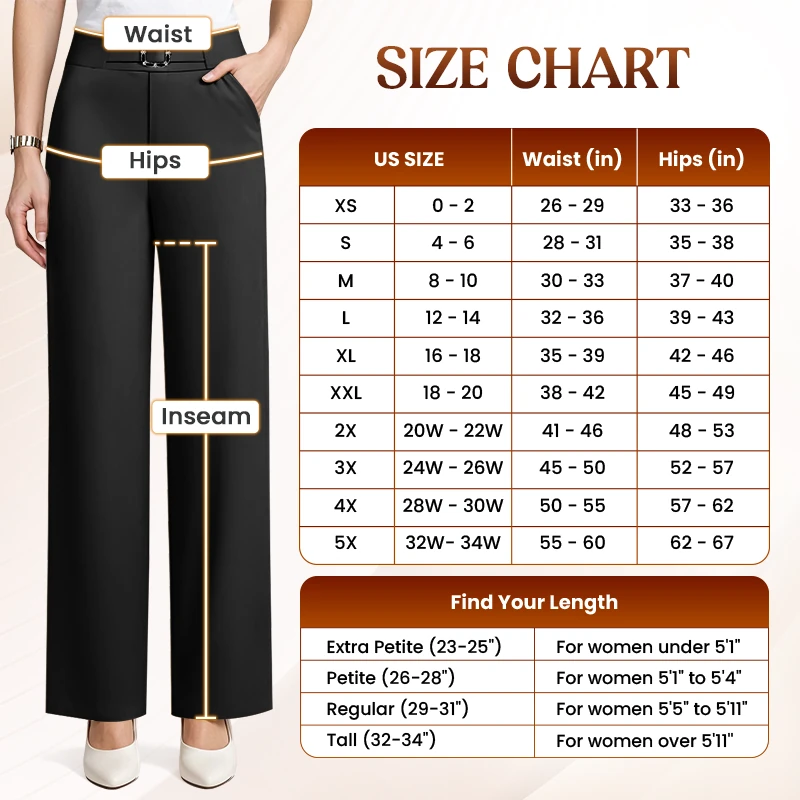 I love these pants! I needed black pants that could work for both formal and casual occasions, and these are just perfect. I’ve received so many compliments on them that I even bought a pair for my mom. They’re so comfortable that I also got them in beige, navy, and ocean blue. The fit is loose in the legs and slightly snug at the waist and hips - very flattering. The fabric is soft, flowy, and breathable, with a high-quality look. I would 100% recommend them to anyone who’s on the fence!